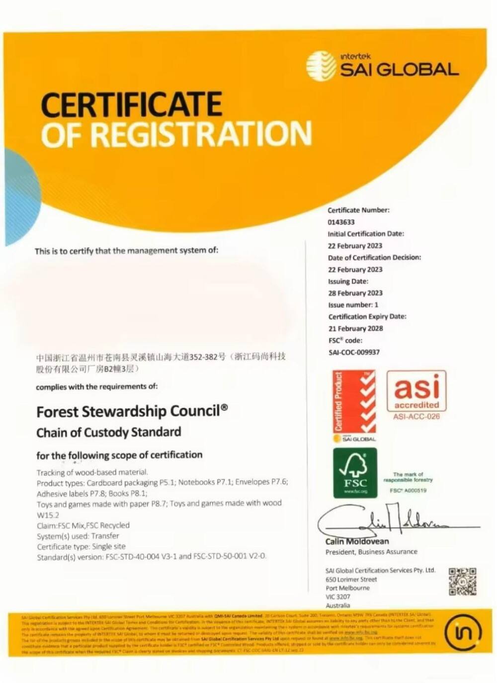 The foundation of quality (ISO9001), the commitment to environmental protection (FSC), the care for people (BSCI), and the persistence of safety (ink testing). Extraordinary strength is witnessed by multiple patents and international certifications. Choosing us means choosing a solid guarantee.