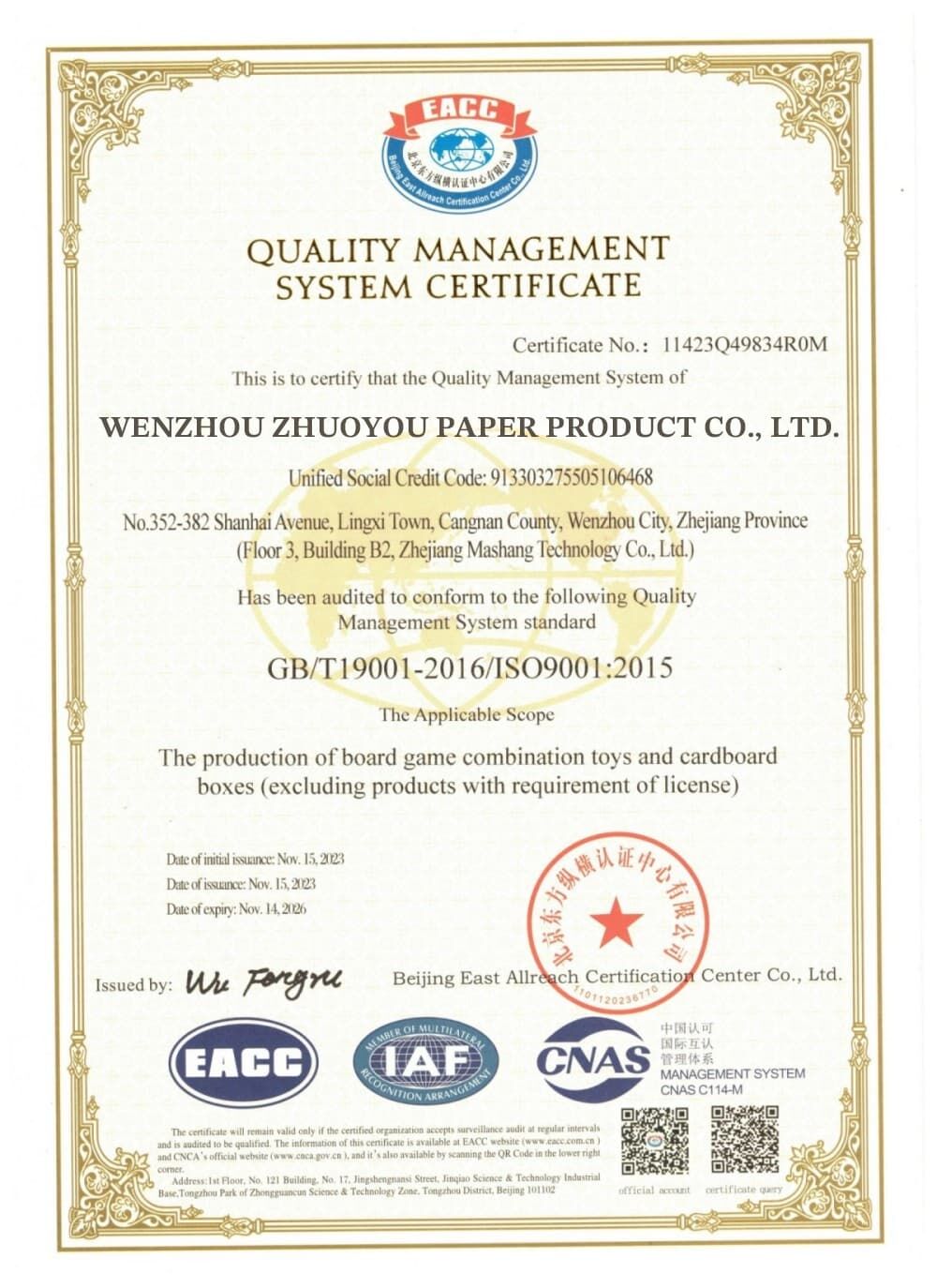 We specialize in manufacturing board games,puzzle games,preschool educational toys,playing cards,paper packaging products,gift boxes, and similar items.